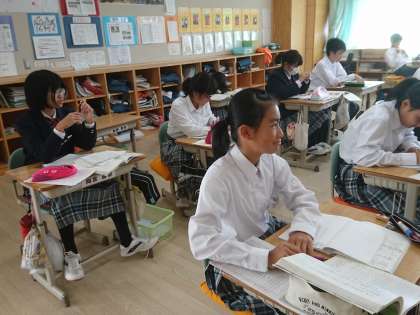7年生は国語で古文「竹取物語」を学習しています。かぐや姫の様子について、読み取ったことを話し合いました。