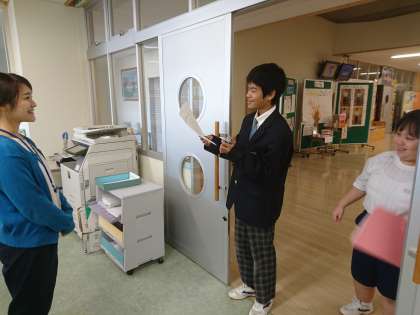 生徒が考えた「犬と猫」「学校と家」「シャープペンと鉛筆」「パンとご飯」という4つのお題について、どちらが好きかを積極的にインタビューしました。