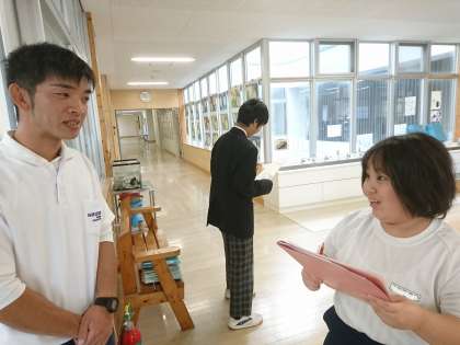 「犬と猫」「学校と家」「シャープペンと鉛筆」「パンとご飯」という4つのお題について、どちらが好きかをインタビューする活動を意欲的に行っています。