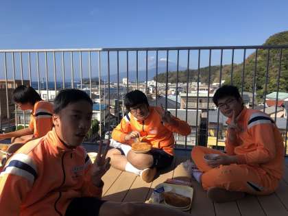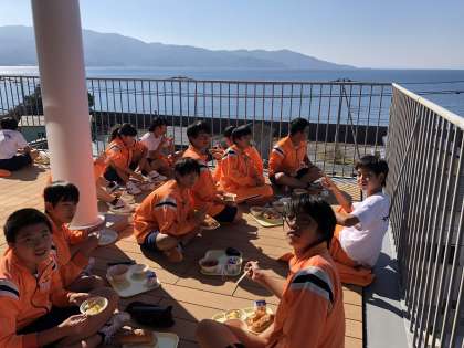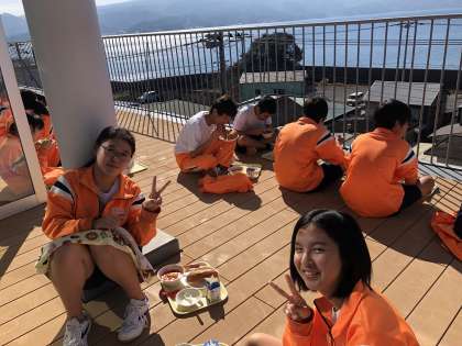 8年生はウッドデッキランチを行いました。富士山を仰ぎ見ながら、友達と会食しました。みんなとても喜んでいました。