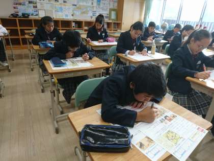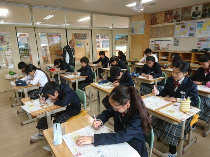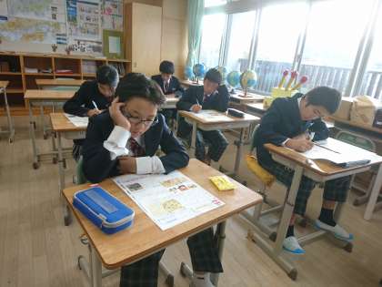 6年生は社会で歴史を学習しています。既習事項の確認として単元テストを行っていました。