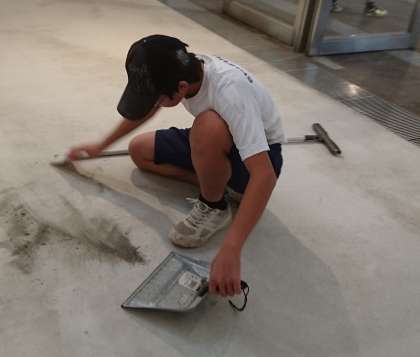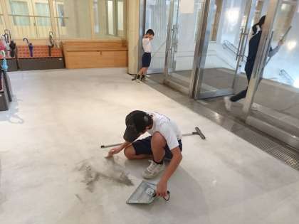 小中C組の日常生活指導の様子です。児童生徒玄関の清掃を丁寧に行っていました。