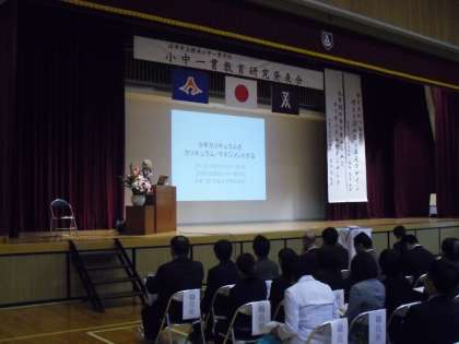 午後の全体会では、「本校の研修について」の報告や大学の先生をお招きしての講演、パネルディスカッションを行いました。