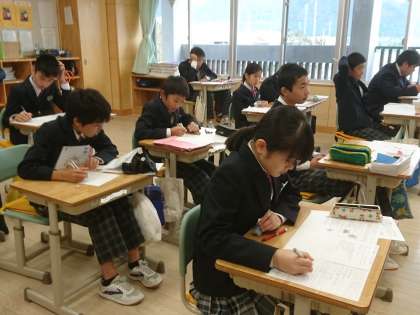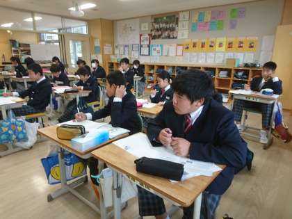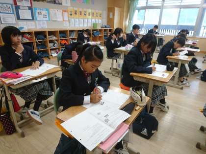 7年生は英語で期末テスト返却がありました。解答をチェックし、次の学習につなげていきます。