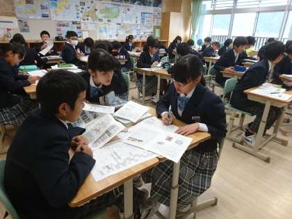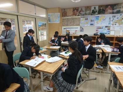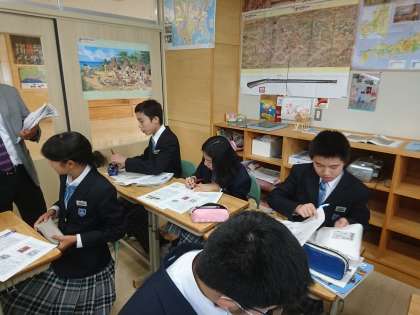 8年生は社会で期末テスト返却がありました。解答をチェックし、次の学習につなげていきます。