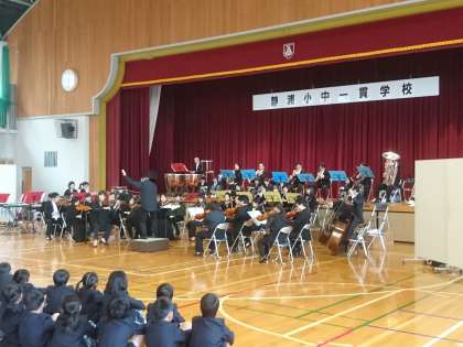 学校訪問コンサートでは、指揮者兼進行の和田様が上手に盛り上げてくださいました。
