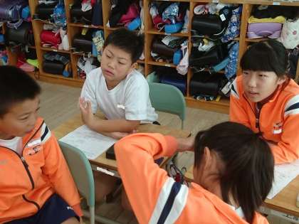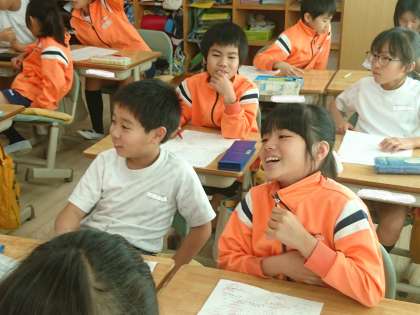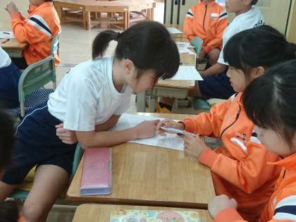 4年生は算数で面積のまとめを行っていました。分かったことを友達に説明する活動を行っていました。