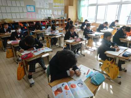 5年生は理科で「人の生命のたんじょう」という教材を学習していました。今日は「赤ちゃんの育つ様子」についてまとめました。
