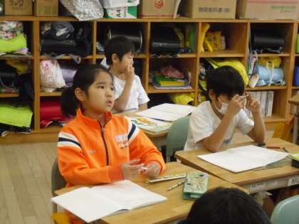 「12×3はどうやってとくのかな?」を学習問題に、12を9と3に分けて解く方法などを考えています。