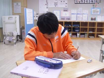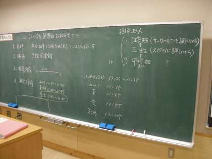 調べ学習の発表会に向けてのお知らせ文を書いています。