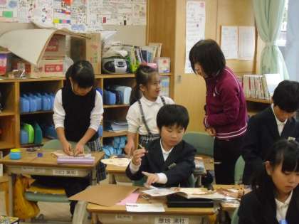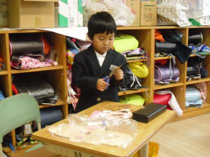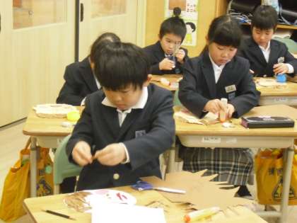 あやとりをしている姿を作製しています。今日は顔の部分に取り組んでいます。