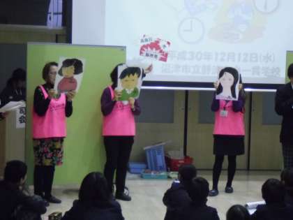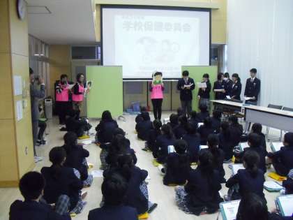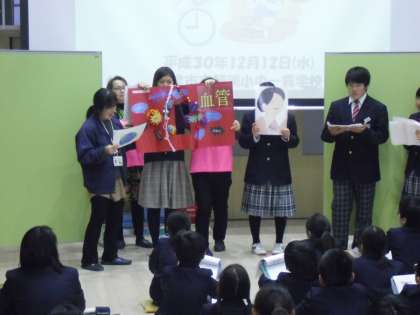 生徒の代表も加わり、健康についてのわかりやすい劇を行いました。