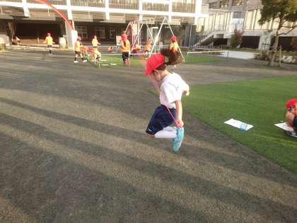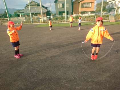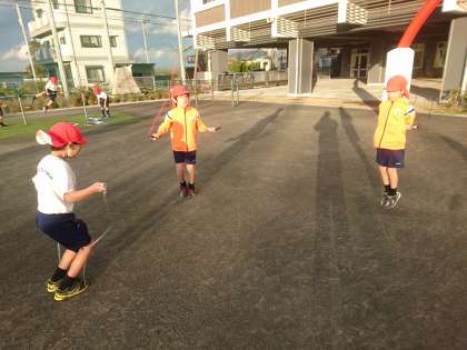 初志部の児童がなわとび運動を意欲的に行っています。