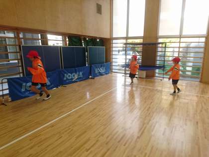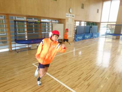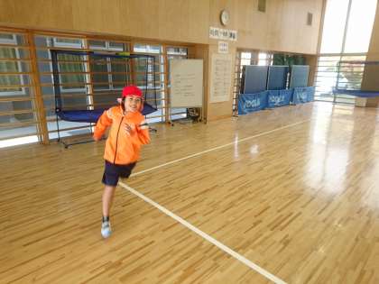 小C組は武道場で体育を行っていました。最初にランニングを行い、体を温めています。