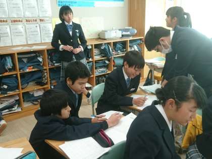 8年生は国語で古文「徒然草」について学習しています。今日は著者である吉田兼好はどんなことを言いたかったのかを話し合いました。