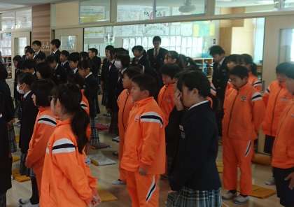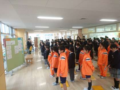今朝、立志部集会を開きました。2学期の振り返りと「健康な生活」をテーマに話がありました。