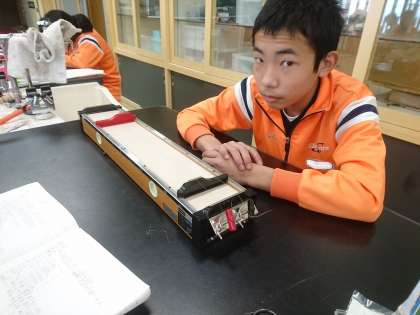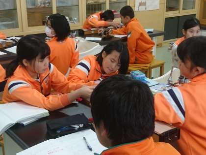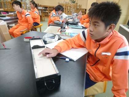 7年生は理科で「音の大きさや高さ」という単元を学習しています。音の大きさや高さは何によってきまるのか、ギターの弦を使って考えました。