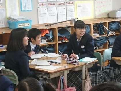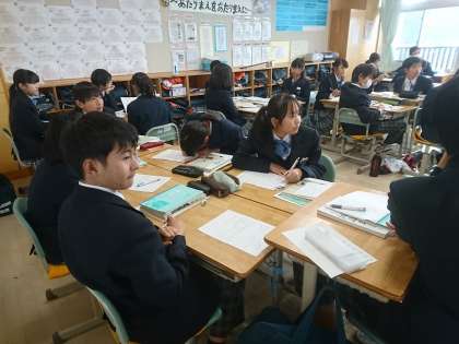 8年生は国語で古文「徒然草」について学習しています。今日は著者である吉田兼好はどんなことを言いたかったのかを話し合いました。