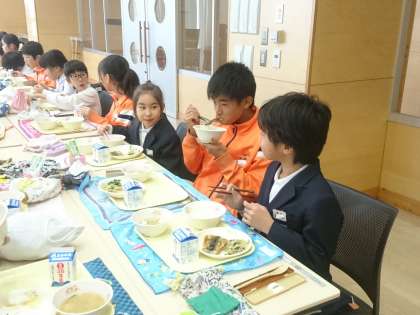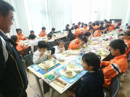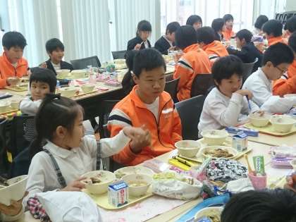 月曜日から始まった異学年との交流給食ですが、今日が最終日となりました。本日は2年生と6年A組が給食を一緒にいただきました。