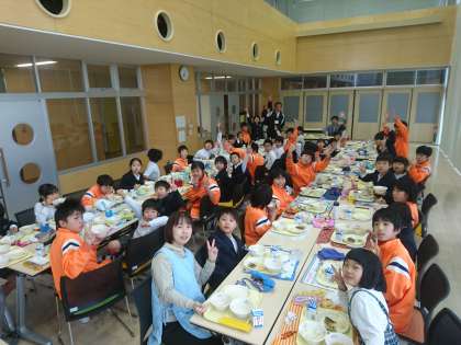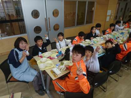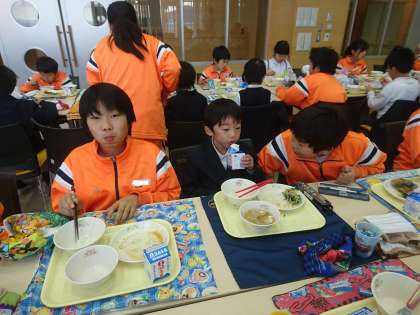 交流給食では学級担任も異学年の交流を楽しんでいました。