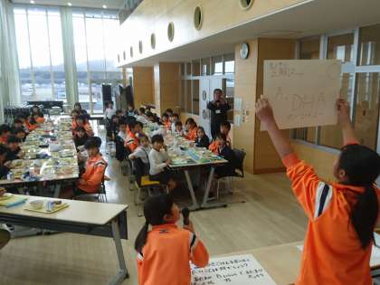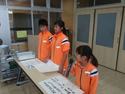 交流給食の終わりに給食委員からクイズが出されました。みんなで三択クイズを楽しみました。