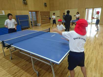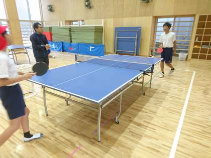 小中C組は日常生活指導において朝トレを行った後に卓球を楽しみました。