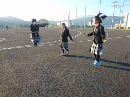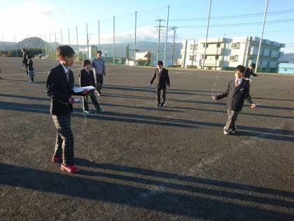 大グラウンドでは立志部の子たちがなわとび運動を行っていました。多くの子たちが意欲的に活動していました。