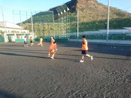 野球部の朝練習の様子です。基礎基本のトレーニングをみっちり行っています。