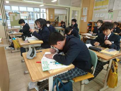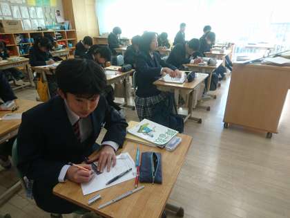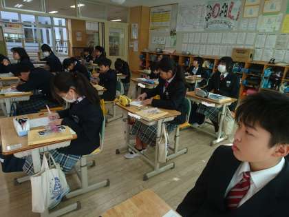 6年生は算数で「図形の拡大」について学習を進めています。今日は三角形の拡大図と縮図を書いていました。