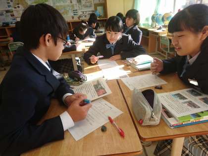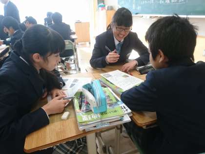 8年生は社会で「日本の地理」について学習しています。今日は、「大阪大都市圏はなぜ人口が多いのか」について資料から読み取ってことを話し合いました。