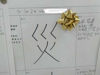 近頃、今年の世相を表す漢字1文字が「災」に選ばれ話題となりましたが、本校でも毎年同様な取り組みを行っています。本校の生徒も「災」を選んだ子がおりましたので紹介させていただきます。