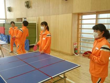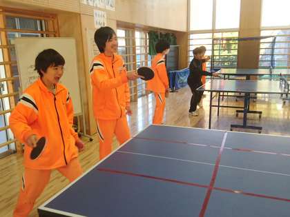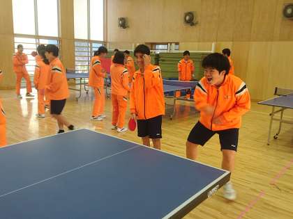 9年生は体育で卓球を行っていました。ダブルスを組み練習をしました。元卓球部の生徒が上手でした。
