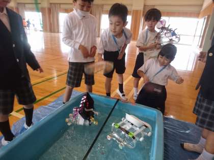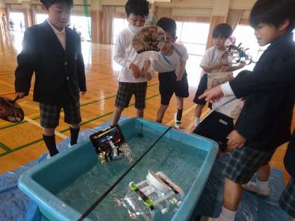 船がまっすぐ進むよう、2年生がアドバイスを送っていました。