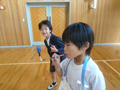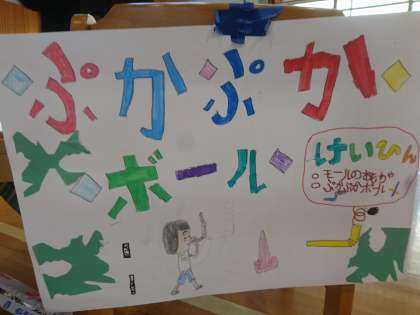 1年生は、ぷかぷかボールを楽しんでいました。ボールが空に浮かぶなんて、どうしてなのかな?