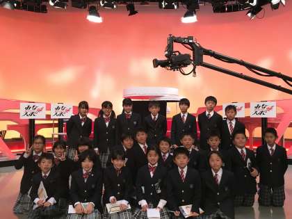 SBSのスタジオセットでテレビカメラと一緒に写真を撮りました。