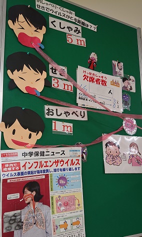 市内でもインフルエンザで欠席する子が少しずつ増えてきております。人混みを避け、不要な外出を控えるよう、ご家庭でもご指導をお願いいたします。