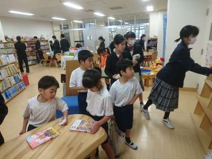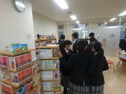 1年生から9年生まで朝からたくさんの子どもたちが学校図書館を利用しています。