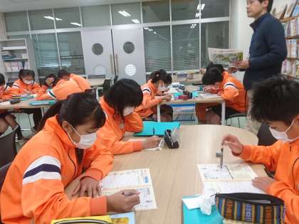 6年生は総合的な学習の時間において、キャリア教育について学習を進めました。将来、どのような仕事に就きたいか、「チャレンジSGT(S…し G…ご T…と)」という資料を使い、それぞれの仕事の内容を確認しました。