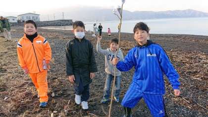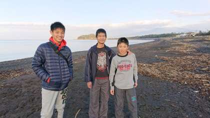 今朝8時より志下海岸において、「志下馬込地区どんど焼き」が盛大に開催されました。1年生から9年生までの子どもたちが参加しました。