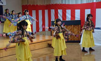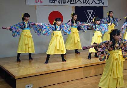 静浦風美踊のメンバーが踊りを2曲披露しました。成人の皆様から大きな拍手をいただきました。