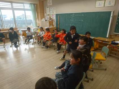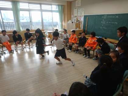 2年生は昼休みにクラスレクとして、ハンカチ落としを楽しみました。