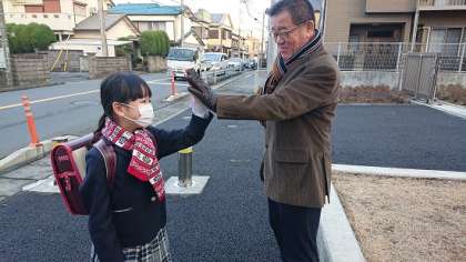 今朝の登校の様子です。子どもたちは元気に登校してきました。