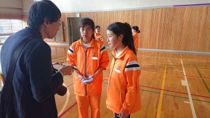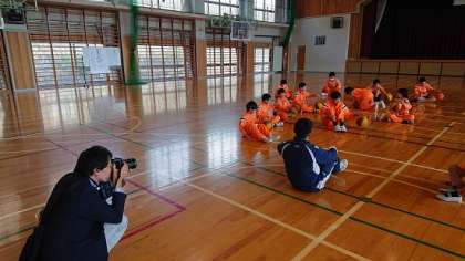 本日、読売新聞沼津支局の記者が本校を訪れ、6年生への取材がありました。6年B組の体育「バスケットボール」を参観し、終了後に何名かの児童にインタビューをしました。