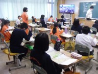 5年生は体育でバスケットボールを行っています。チームごとにパス回しなどの基本プレーをしました。