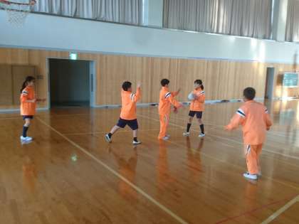 5年生は体育でバスケットボールを行っています。みんな集中して活動に取り組んでいます。