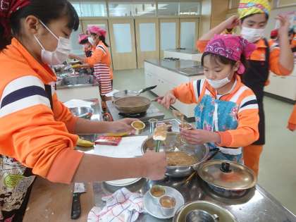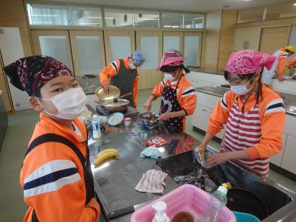 6年生は家庭科で調理実習を行いました。「感謝の気持ちを込めて、ごちそうスイーツを作ろう」という学習テーマのもと、それぞれの班で上手に実習を行いました。