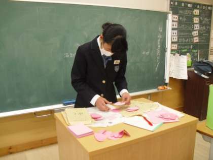 福祉委員会は、「幸せの木」のメッセージ記入用紙を作成しています。学校に感謝の意気持ちがあふれるように。