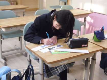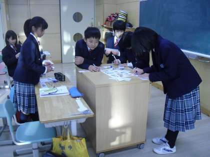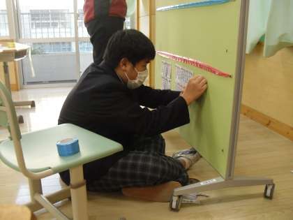 立志部委員会は、縄跳び運動の進級状況を示した掲示物を熱心に作っています。