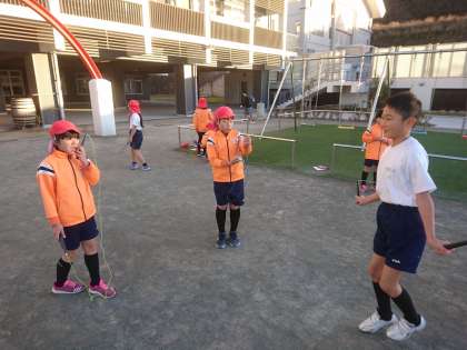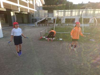 初志部なわとび運動の様子です。それぞれが目標を決め、毎日トレーニングに励んでいます。