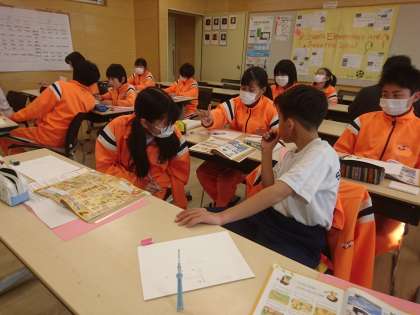 6年生は言語科「英語の時間」において、Unit7「My best memory」を学習しています。今日は、絵カードを作り、それを利用して英語でプレゼンテーションする活動を行いました。